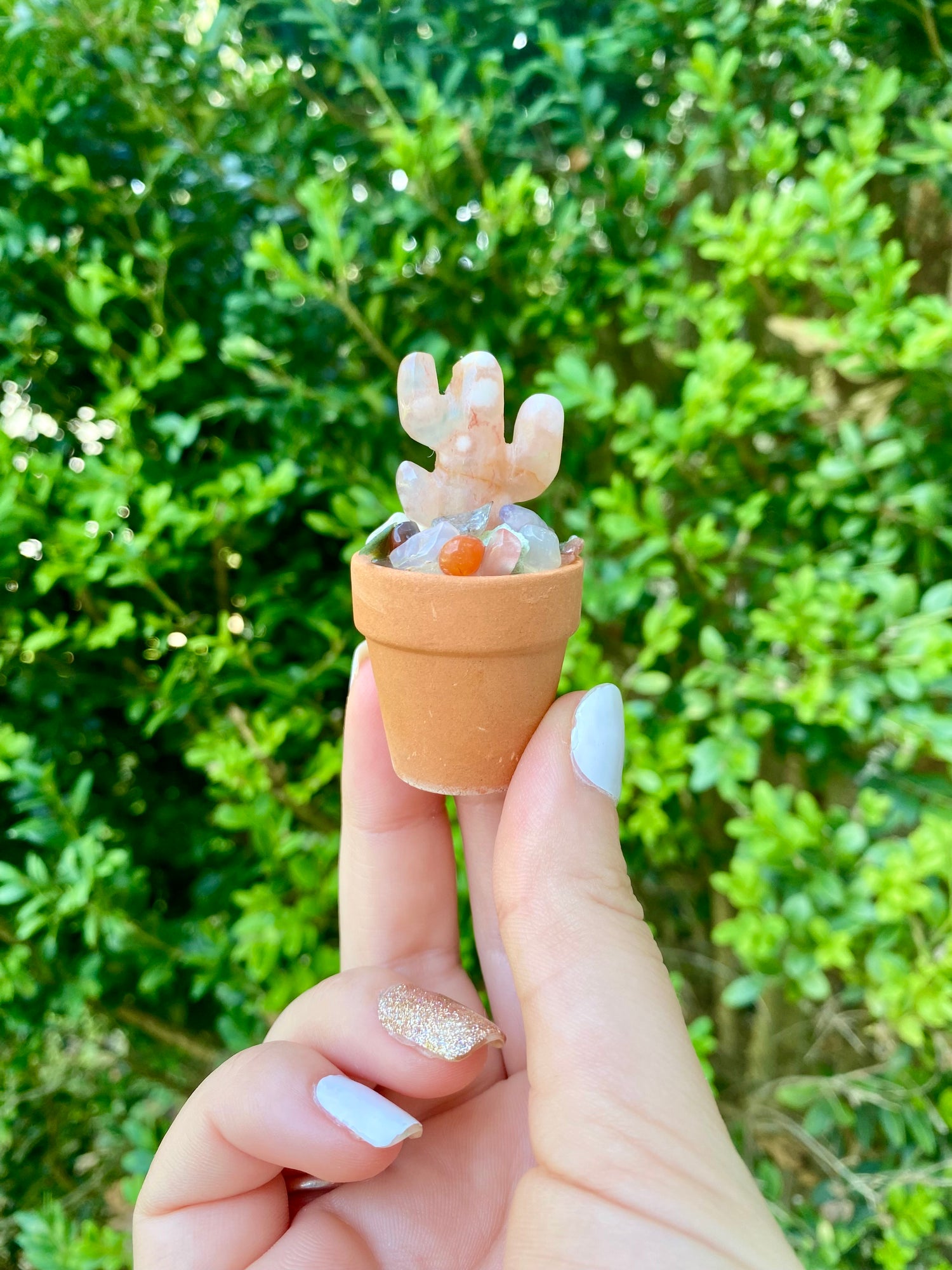 These crystal cacti are made from natural stone and will vary in color, shape, size and pattern.